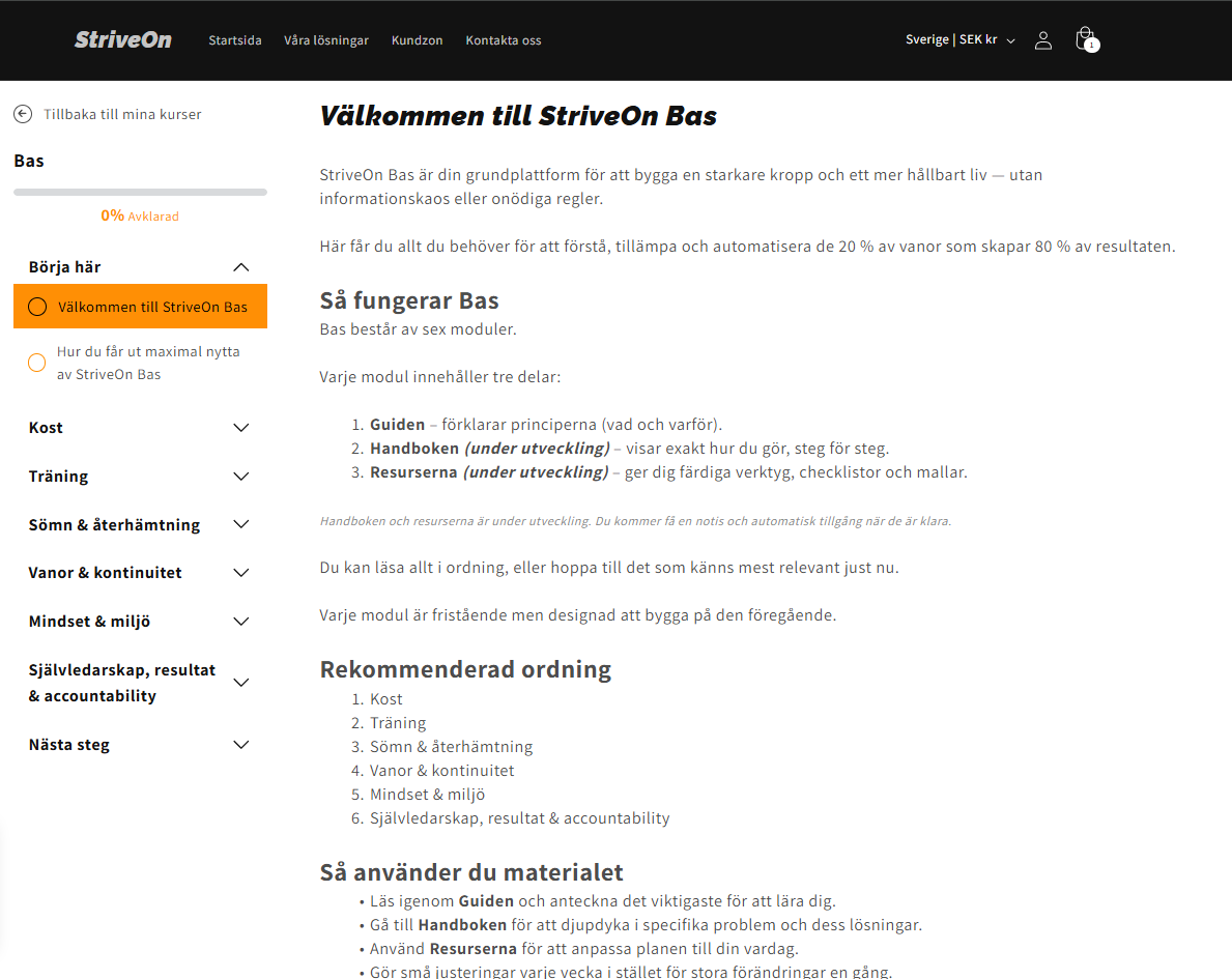 Allt innehåll nås digitalt via striveon.se → Kundzon.